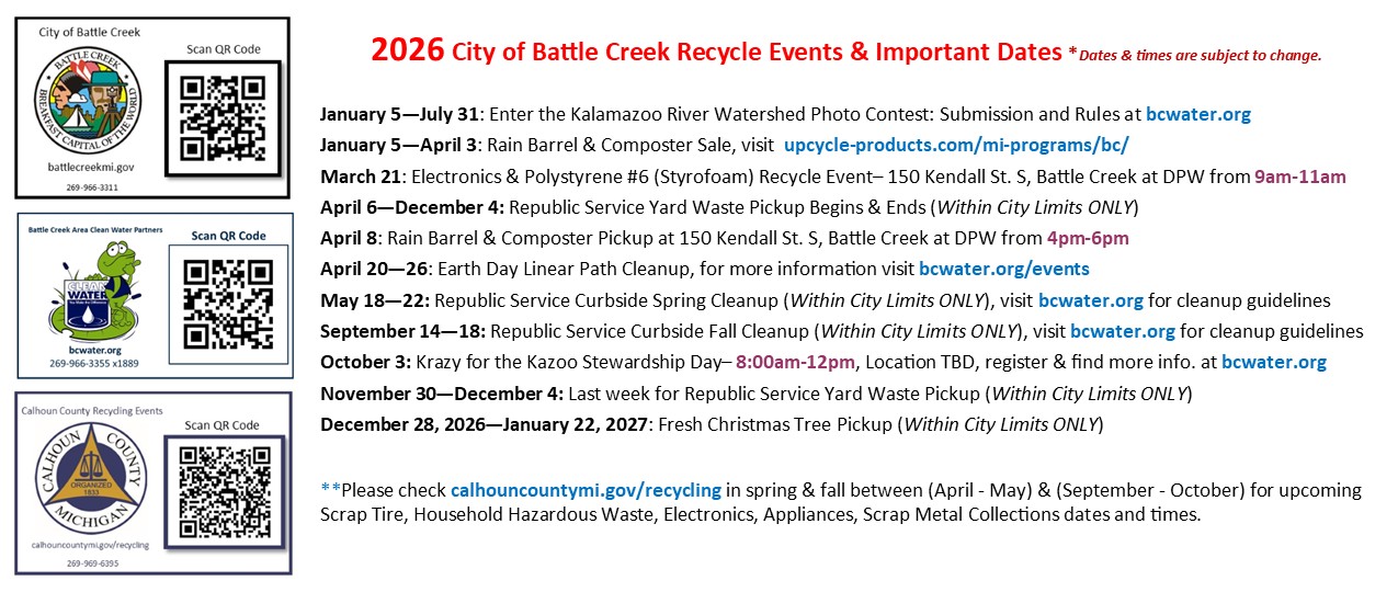 The Environmental Services Department oversees important environmental issues in the Battle Creek area, including: