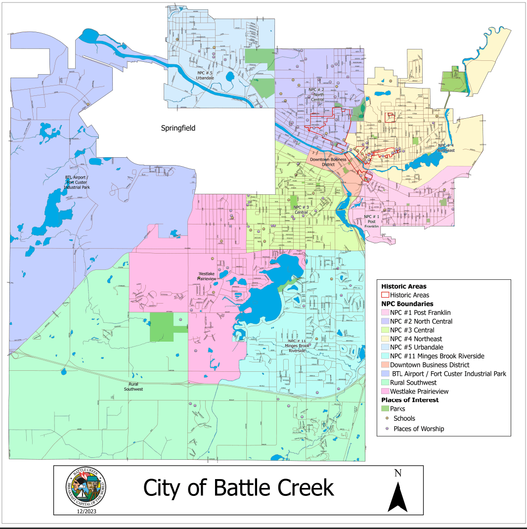 Along with attendance, factual guidance, and addressing of issues, city staff also provide administrative support, including mailing of meeting agendas, generating Beautiful Battle Creek awards, and overseeing compliance with the NPC charter, Open Meetings Act, and bylaws.