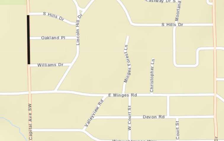 • Capital Avenue SW – Closed to through traffic 7 a.m.-2:30 p.m. Wednesday and Thursday, July 28 and 29, between South Hills Drive and Williams Drive. Crews will remove two large trees that have died. The posted detour will use South Hills, Lincoln Hills Drive, and Williams.