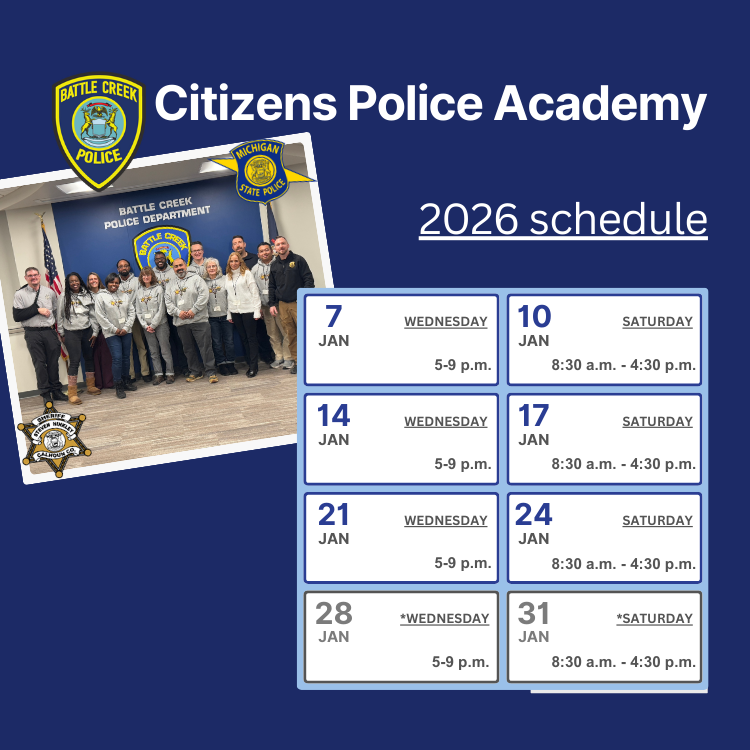 BATTLE CREEK, Mich. – The Battle Creek Police Department, in partnership with the Calhoun County Sheriff’s Office and the Michigan State Police, will host its annual Citizens Police Academy starting in January.